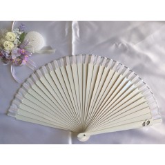 Elegante ventaglio da sposa e per gli invitati, la sua particolarità che lo rende unico è l'intarsio delle fedi che presenta sulla bacchetta. Resistente di alta qualità.