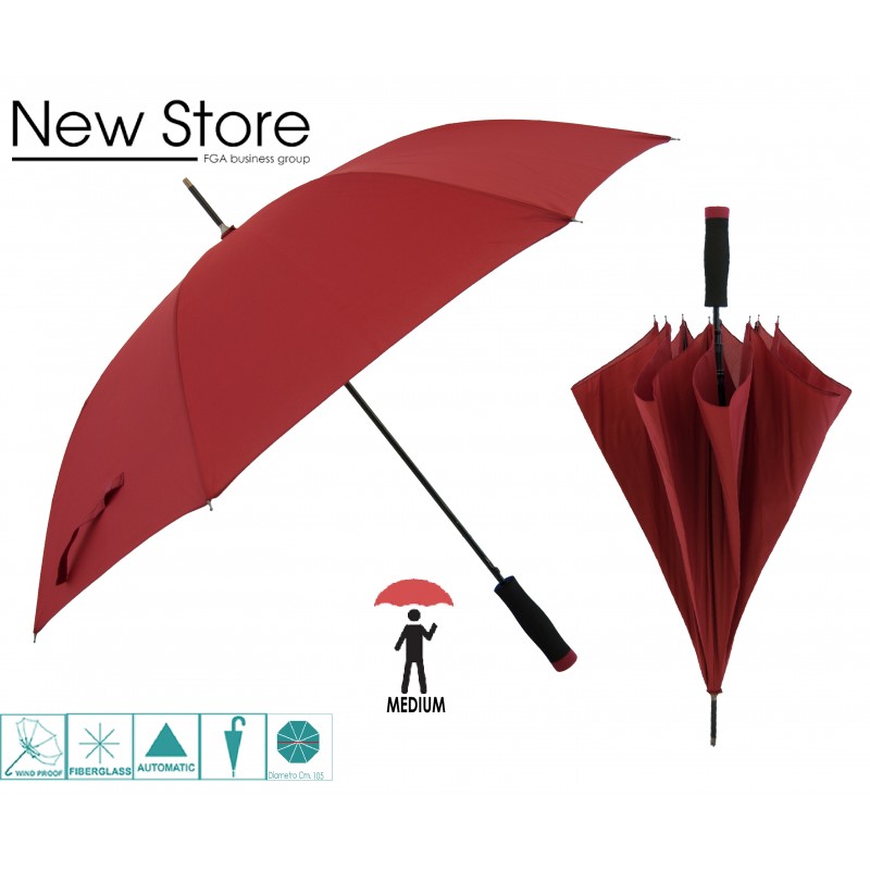 Ombrello pratico leggero,con impugnatura dritta in eva e bordino a contrasto,sistema di apertura automatico colore bianco,verde,bordeux,blu,nero