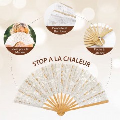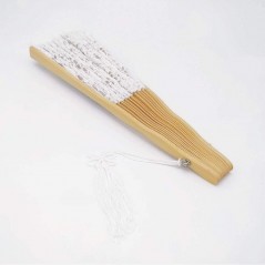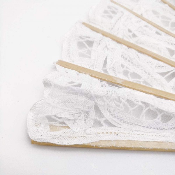 Ventaglio in pizzo bianco in bamboo. Modello XLarge larghezza 50 cm altezza 27 cm.
