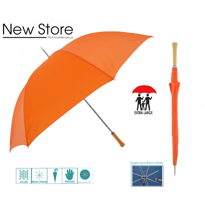 diametro aperto cm.130 altezza compresa impugnatura cm.103,sitema di apertura manuale,asta e puntale in acciaio,tessuto poliestere