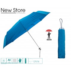 Piccole dimensioni tascabile,24 cm. di altezza,diametro cm.98,tessuto poliestere setinato idrorepellente,impugnatura tonda in pvc colore argento,sistema di apertura manuale,antivento