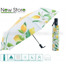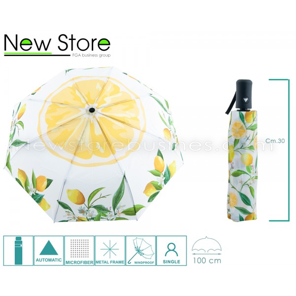 Ombrello novità 2024,mini pieghevole da borsa,stampa fantasia limoni,con sistema antivento,apertura con pulsante automatico,tessuto microfibra idrorepellente